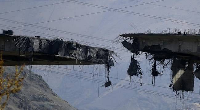 Ağır hasar alan ve bazı kısımları çöken köprüdeki yıkım, saldırının boyutlarını ortaya koyuyor.