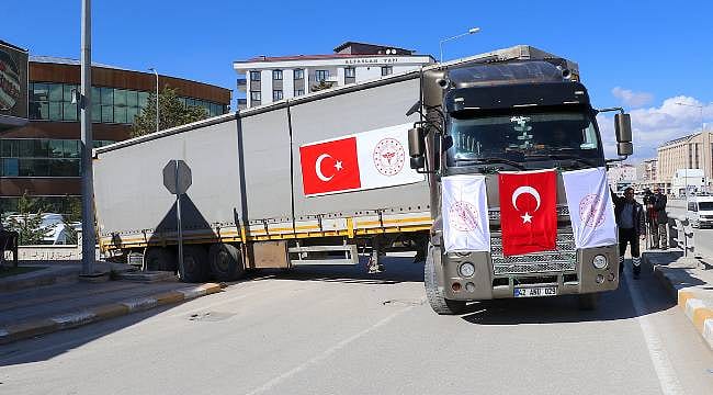 Türkiye'den İran'a gönderilen tıbbi yardım malzemesi yüklü 3 tır Van'dan yola çıktı.