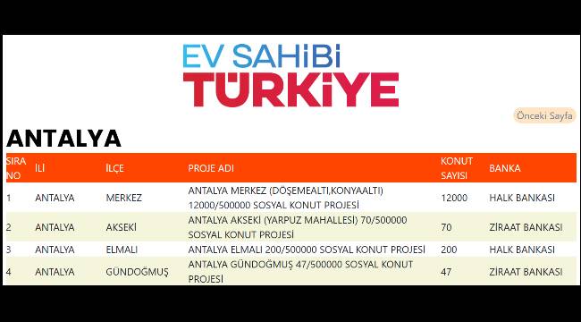 | 5 | ANTALYA | İBRADI | ANTALYA İBRADI 50/500000 SOSYAL KONUT PROJESİ | 50 |