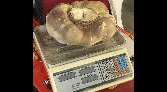 Vatandaşlar cep telefonlarıyla fotoğraf çekerken, bazıları ise böyle büyük bir turpu ilk kez gördüklerini dile getirdi. Kilosu 50 liradan satışa sunulan ürün kısa sürede alıcı buldu.
