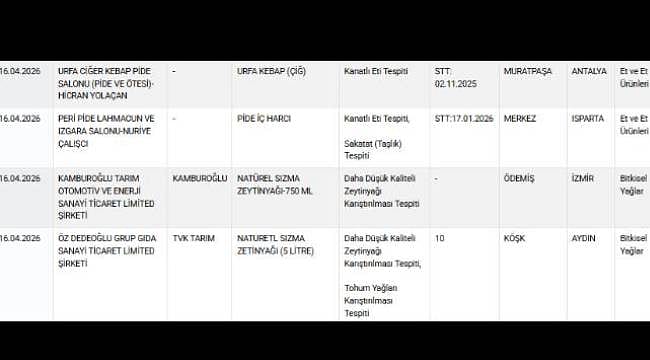Tarım ve Orman Bakanlığı 16 Nisan 2026 tarihi itibarıyla taklit veya tağşiş yapılan gıdalar (aynı değeri taşımayan madde eklenmesi) ile sağlığı tehlikeye düşürecek gıdalar listesini güncelledi.