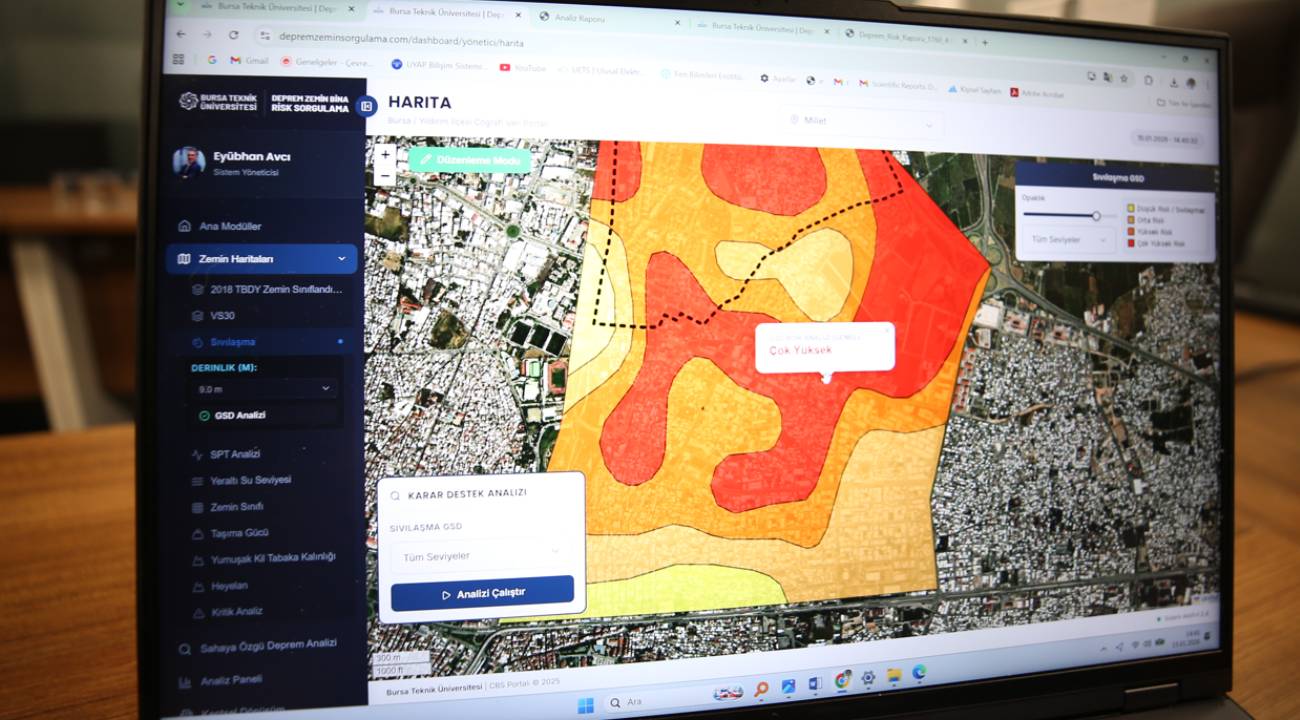 Araştırma ekibi, saha çalışmaları sırasında, Bursa'nın depremselliğini, zemin sıvılaşması olan bölgeleri, üstyapı (bina) risk analizi, yumuşak zemin etkisi, yerleşim bölgesindeki yer altı su seviyesi, mevcut binanın yapım yılı, binanın fay hattına uzaklığı ve depreme dayanıklılığı gibi verileri tek bir portalda topladı.