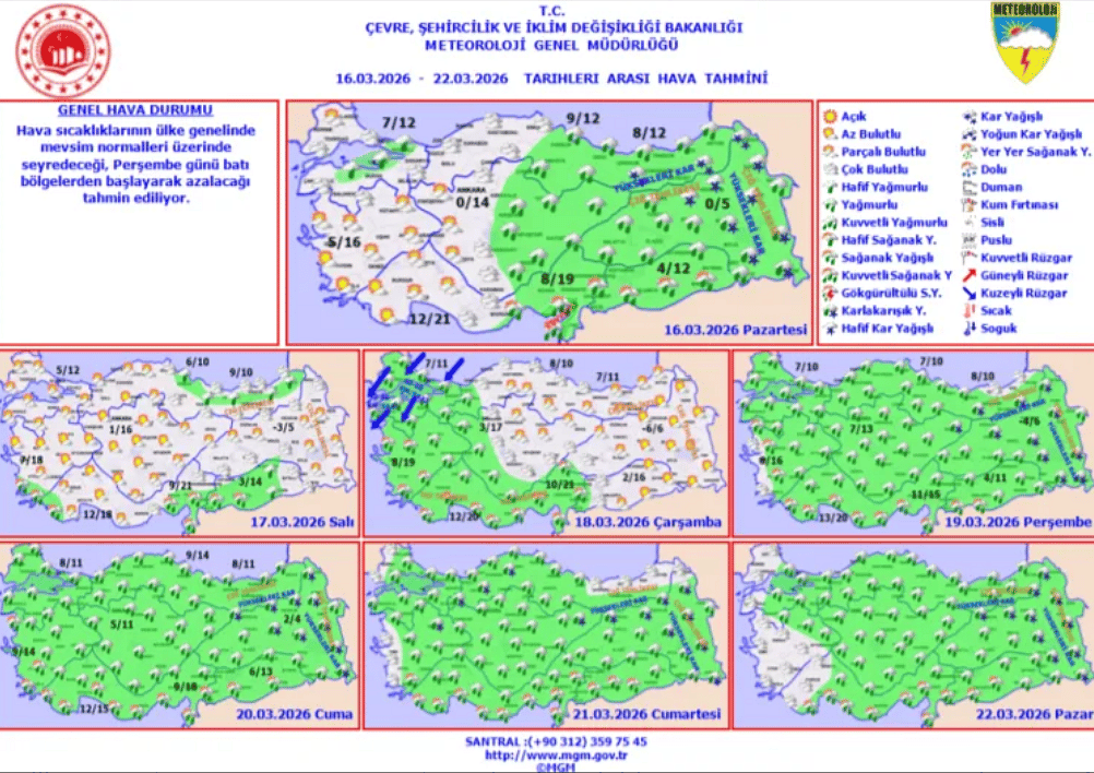 Meteoroloji Genel Müdürlüğü’nün son verilerine göre, Ramazan Bayramı tatili öncesinde Türkiye genelinde hava durumu tablosu belirginleşmeye başladı. Mevsim normallerinde seyreden sıcaklıklar, Perşembe gününden itibaren yerini serin ve yağışlı bir sisteme bırakıyor.
