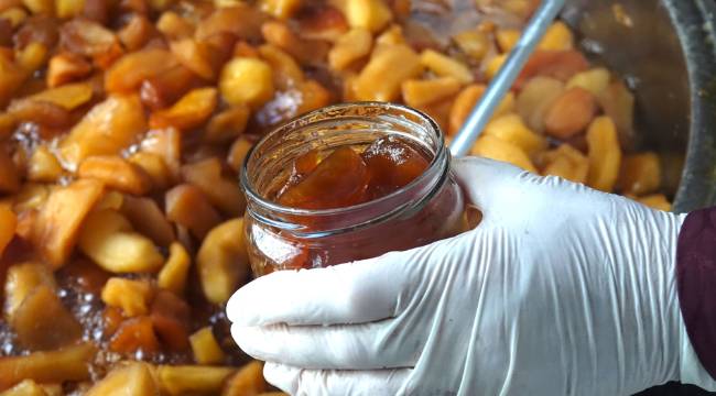 1 Meyveler ve sebzeler kadınlar tarafından işlenmiş ürüne dönüştürülüyor