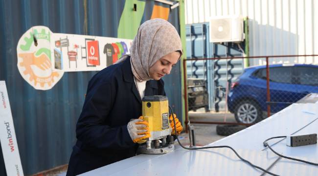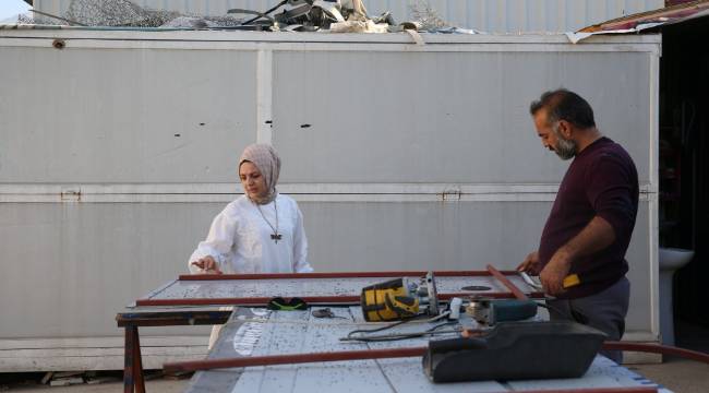 Çalışmaktan vazgeçmeyen depremzede girişimci, Afet ve Acil Durum Yönetimi Başkanlığı ve Kırşehir Valiliğince oluşturulan Ahi Evran Konteyner Sanayi Sitesi'nde tahsis edilen atölyede iş hayatına yeniden başladı.