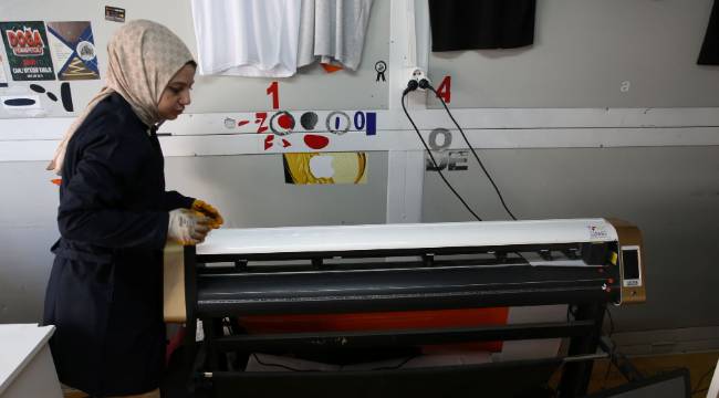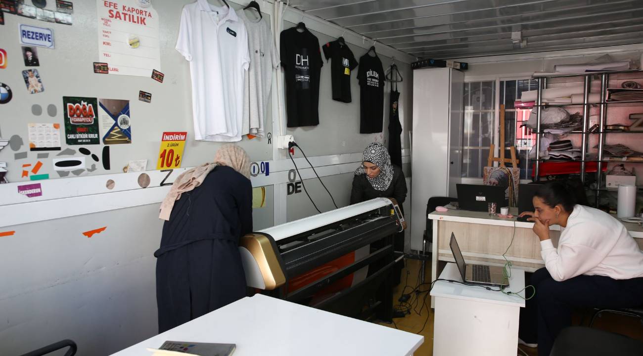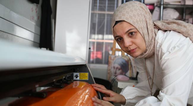 Hatay’ın İskenderun ilçesinde, 6 Şubat 2023’te meydana gelen depremlerde promosyon ürün ve tabela tasarladığı iş yeri yıkılan 36 yaşındaki reklamcı Gülbahar Uzun, çalışmalarına ara vermek zorunda kaldı. Uzun, Ahi Evran Konteyner Sanayi Sitesi’nde kendisine tahsis edilen atölyede mesleğini sürdürme olanağı buldu.