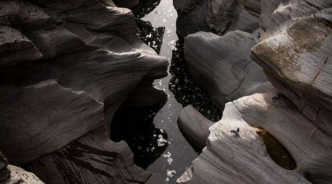 Binlerce yılda şekillenen, girintili çıkıntılı, renk tonları farklı kayaları inceleyen turistler bol bol fotoğraf çektiriyor