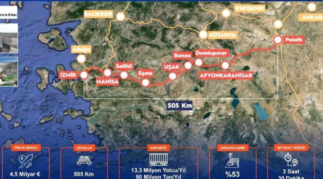 Uraloğlu, "Projemiz tamamlandığında Ankara-İzmir arası hat uzunluğu 624 kilometre olacak ama bizim çalışmalarımız zaten Polatlı'ya kadar olan kesim bittiği için Polatlı'dan itibaren 505 kilometrelik İzmir'e kadar olan bölümde çalışmalarımızı yürütüyoruz. Hattımız tamamlandığında Ankara-Afyonkarahisar-Uşak-Manisa ve İzmir illerimizde yaşayan yaklaşık 11 milyon 500 bin insanımız doğrudan hızlı tren konforuyla tanışmış olacak. Yine, etrafımızdaki illeri de buna ilave edebiliriz" demişti.