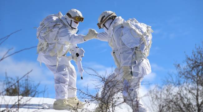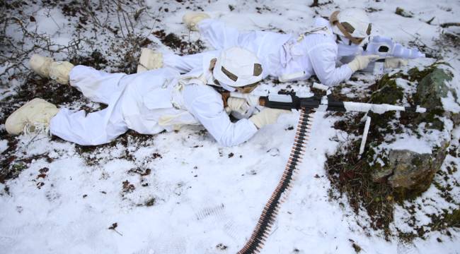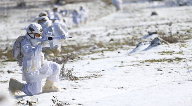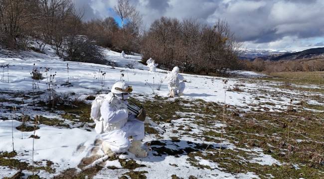 Mesudiye ilçesinde gerçekleştirilen tatbikatta, karlı zeminde gerçekleştirilen zorlu intikalde tek bir iz oluşturarak ilerleyen birlikler, kar kamuflajlarıyla zor şartlarda harekat gerçekleştirebilme yeteneklerini ortaya koydu.