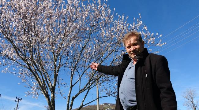Güneşli hava ile birlikte meyve ağaçlarının erkenden çiçek açtığını belirten Mehmet Aydın, "Zamanı değil ama şu anda çiçek açtılar. Badem ağacını dikeli yaklaşık 3 sene oldu." dedi.