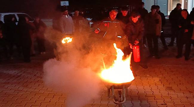 Afet ve Acil Durum İl Müdürlüğü ekipleri de pansiyonda öğrencilerin acil durumlara hazırlığını güçlendirmek amacıyla "Yastık Altı Acil Durum Cihazı" ile tatbikat yaptı.