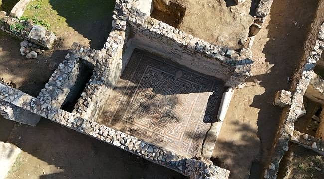 Yapının, merkez giriş bölümünde çok iyi korunmuş bir mozaiğin ortaya çıkarıldığını belirten Ergürer, "Geometrik ve çeşitli çiçek motiflerinden oluşan mozaikte henüz ilk çalışmalarımızı yapıyoruz. Mozaiğin 4 ile 6. yüzyıllar arasına tarihlendiğini düşünüyoruz." dedi.