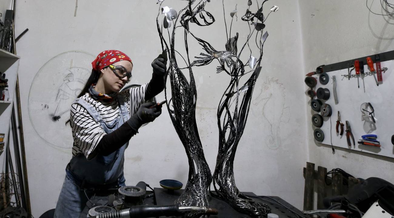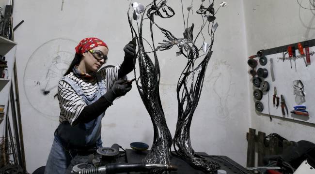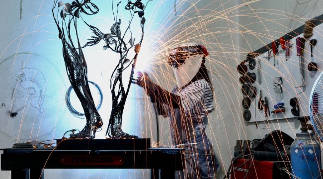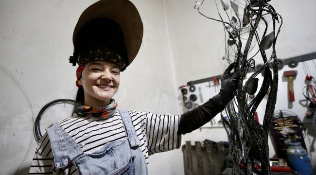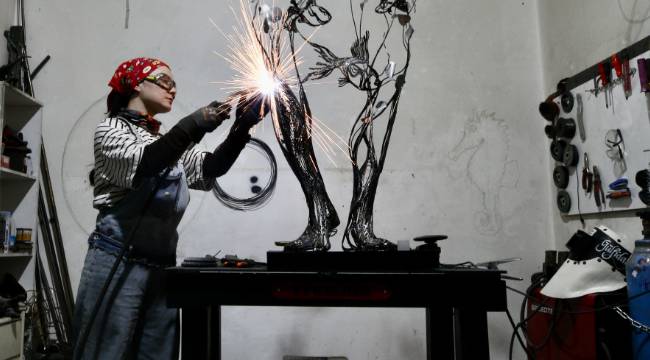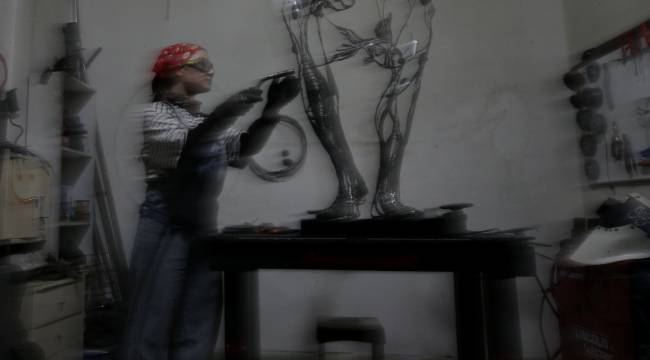 Sakarya’da çalışmalarını sürdüren metal heykel sanatçısı Gülfidan Soyuğur, titizlikle işlediği metal parçaları farklı üretim aşamalarından geçirerek dekoratif eserlere dönüştürüyor.