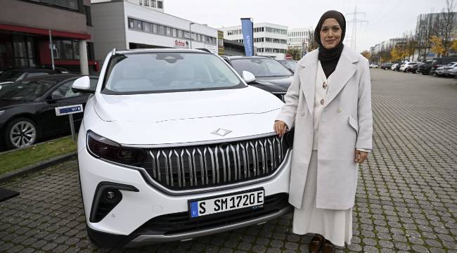 Almanya’da ön siparişlerin başladığı 29 Eylül’de Togg aracını sipariş verdiğini belirten Aydoğan, “Kendi arabamızı Almanya gibi bir Avrupa ülkesinde kullanmak bizim için çok gurur verici şeydi ve mutluyuz. Bugün burada olmaktan, arabamı teslim almaktan, Türk arabasını, kendi yerli malımızı kullanabilmekten çok mutluyuz.” diye konuştu.