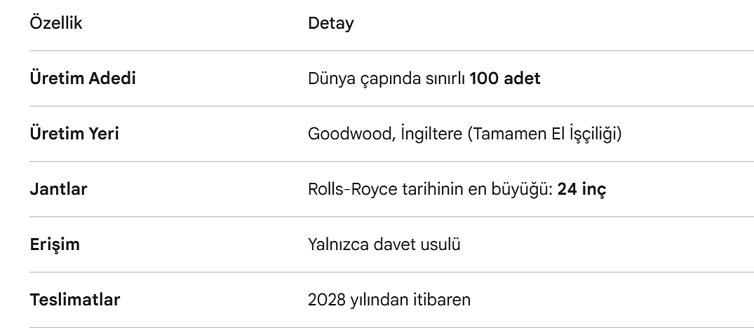 Ultra Sınırlı Koleksiyon: Goodwood’da el işçiliğiyle üretilecek olan bu sanat eseri, dünya çapında yalnızca 100 adet ile sınırlandırılmış olup müşterilere sadece davet usulüyle sunuluyor.