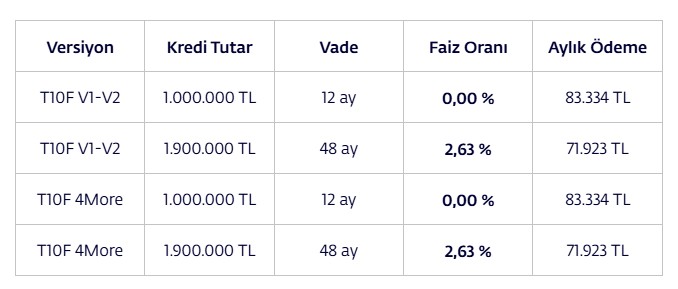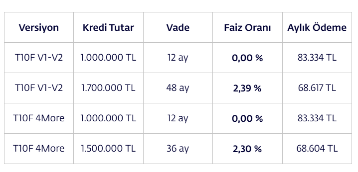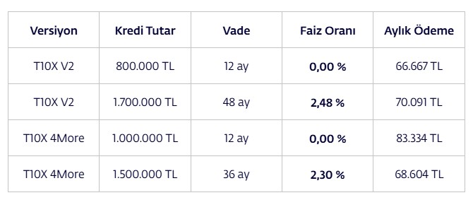 Togg'dan yapılan açıklamada "Yılın son ve en yüksek kredi" desteği denildi. İşte Togg'un açıkladığı finansman seçenekleri: