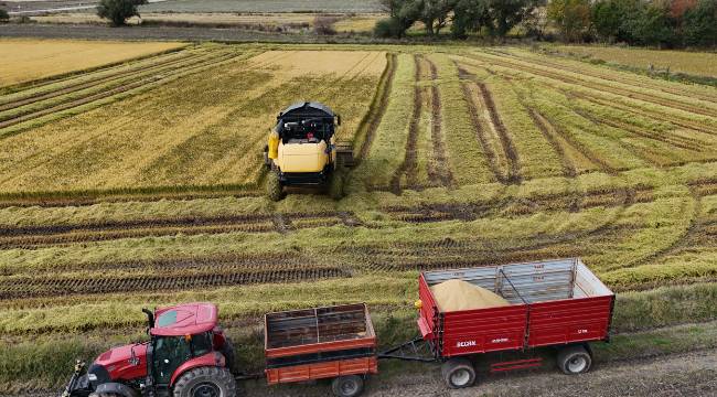 Binbir emekle yetiştirdikleri çeltiğin hasadının heyecanla yapıldığını dile getiren Yalçın, "Şu an dönüm başına 1100-1200 kilogram gibi bir verim alıyoruz.