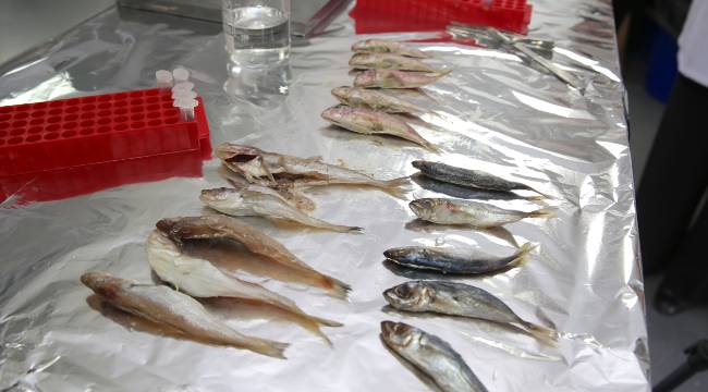 Proje kapsamında bir araya gelen su ürünleri, kimya, veteriner ve sağlık bilimleri fakültelerinden bilim insanları, istavrit, barbun ve mezgiti incelemeye aldı.