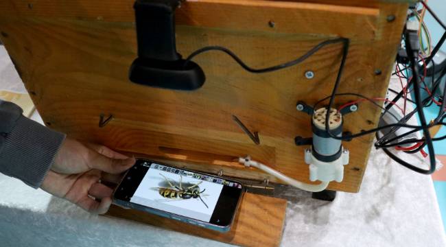 Yapay zeka destekli kovan hazırlayan ekip, kovan girişine entegre edilen hava üfleme sistemiyle eşek arılarını kamera ile tespit edip uzaklaşmasını sağladı.