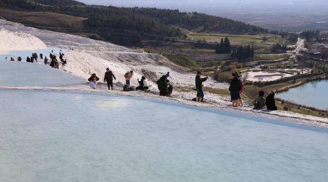 1 Pamukkale turistlerden yoğun ilgi görüyor