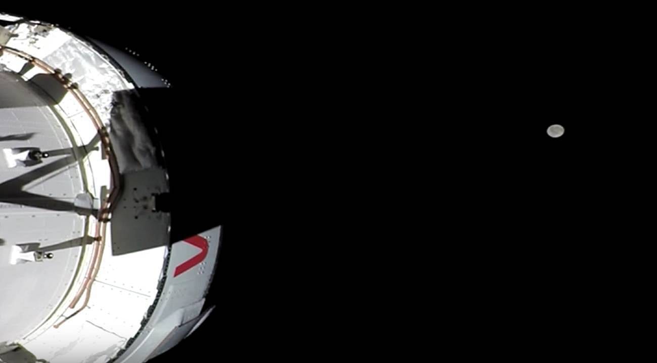 Orion uzay aracı, Ay transfer yörüngesindeki ilerleyişini sürdürüyor. Görevin 3. uçuş gününde kaydedilen bu video verisi, aracın güneş paneli kanatlarına (SAW) entegre edilmiş optik sensörler aracılığıyla elde edildi. Görüntüler, Orion’un Ay’a doğru olan doğrudan yaklaşma rotasını doğruluyor.
