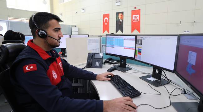 112 Acil Çağrı Merkezi çalışanları gelen ihbarlar doğrultusunda olaylara acil müdahale için 7 gün 24 saat esasıyla görev yürütüyor.