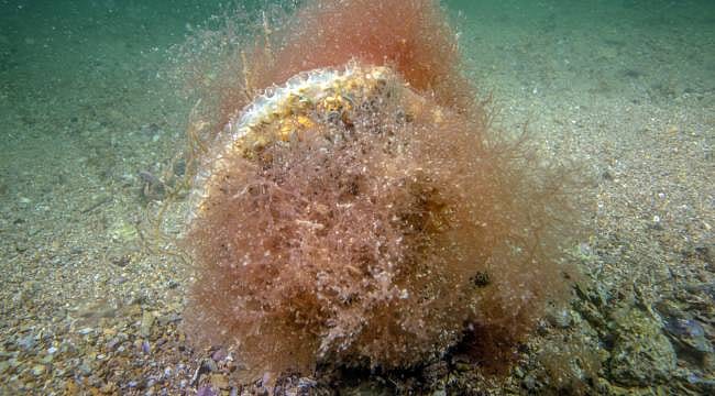 Prof. Dr. Sarı, izleme projesi kapsamında fırsat buldukça tanımlı istasyonların dışındaki noktalarda dalışlar yaparak, yeni alanlar belirlemeye çalıştıklarına dikkati çekerek, "Ocak ayında yaptığımız dalışlar esnasında burada enteresan şekilde çok sağlıklı bir pina popülasyonu ve iskelenin hem sağında hem solunda iki farklı tür deniz çayır alanı tespit ettik. Çok küçücük bir alan kalmış, 50-100 metrekare gibi ama halen doğal habitatın yaşamı sürdürmek için direndiğini bize göstermesi açısından çok kıymetli buluyoruz. Bu deniz çayırı alanında Marmara'nın en yaygın deniz çayırı türlerinden birisi olan Cymodocea nodosa var. Bu deniz çayırı türünün içi komple pinalarla dolu. Bu muhteşem bir şey. Neden muhteşem? Çünkü bu bölge Kuzey Marmara'nın en yoğun endüstriyel bölgelerinden bir tanesi." diye konuştu.