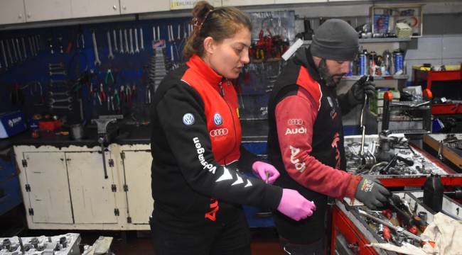 Zamanla kendini geliştiren Hatice Kartal, şimdi araçların arıza tespiti, yağ değişimi ve periyodik bakımları ile tamiratını gerçekleştiriyor.