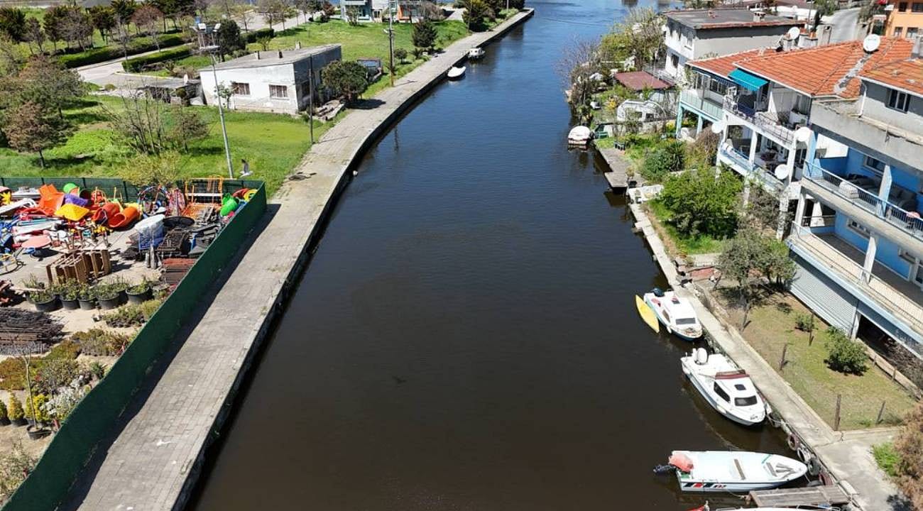 Küçükçekmece Gölü ile Marmara Denizi'ni birbirine bağlayan dere, rengi değişerek bulanık olarak akmaya başladı.