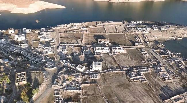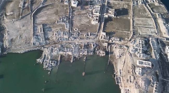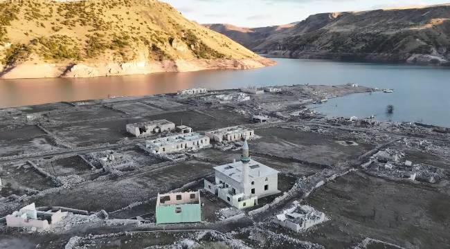 Su seviyesinin düşmesi sonucu, eski yerleşim yerinde bulunan köy evleri, cami, kilise ve diğer yapılar tekrar görünür hale gelirken, vatandaşlar, baraj gölünün yaklaşık 50 metre çekildiğini belirtti.